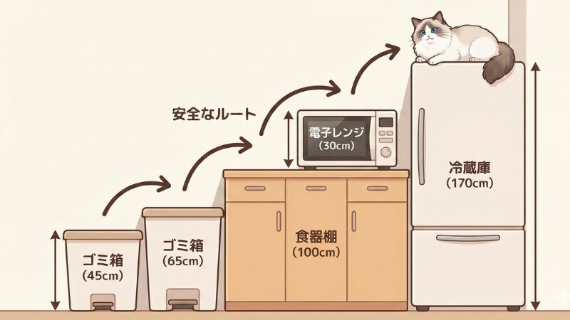特に子猫は骨も発達途中です。万が一「飼い主さんの留守中に落下して怪我をしたら……」と考えると、非常にリスクが高い時期だと言えます。